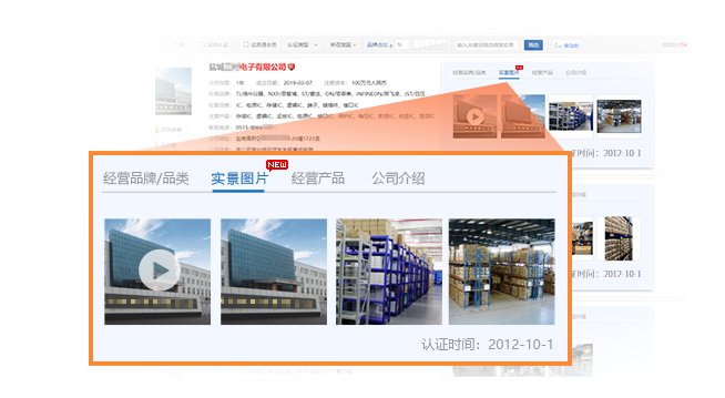 实体认证是多多28电子网付费会员的一项重要认证服务 ,在电子网IC搜索页、供应商搜索页、企业旺铺首页和诚信档案页等位置展示企业实体店铺的门头、办公环境、仓库等照片/视频等实体信息,增加被询盘的机会。
